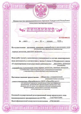 Прием лома и отходов черных и цветных металлов от физических лиц осуществляется при наличии Паспорта гражданина РФ и ИНН